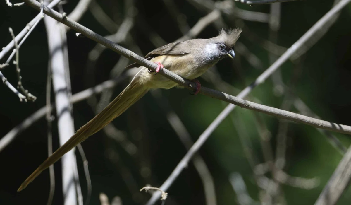 Moving in small groups, the Speckled Mousebird is easy to spot as it glides between bushes and trees. Its long tail and soft colors give it a unique appearance.