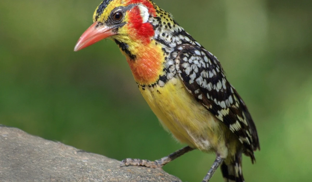 Bright and unmistakable, the Red-and-Yellow Barbet brings bold color to the landscape. Its rhythmic calls echo through the trees, especially in the early hours.