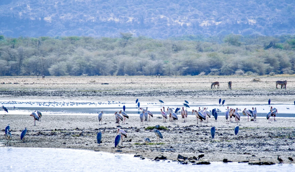 Beyond the village, Lake Manyara adds a reflective dimension to the landscape. Depending on the time of day, the lake shifts from silver to deep blue, mirroring the sky and enhancing the sense of openness.
